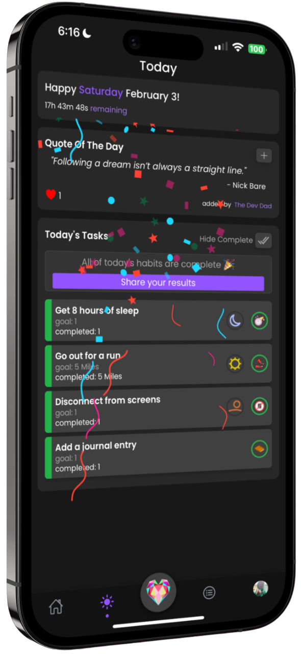 embtr is officially live! We currently allow you to schedule your habits, knock them out on a day to day basis, and share your results.Ready to start chasing your dreams? Join us! See you in the app.- Brent (thedevdad)